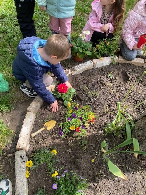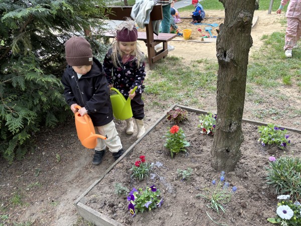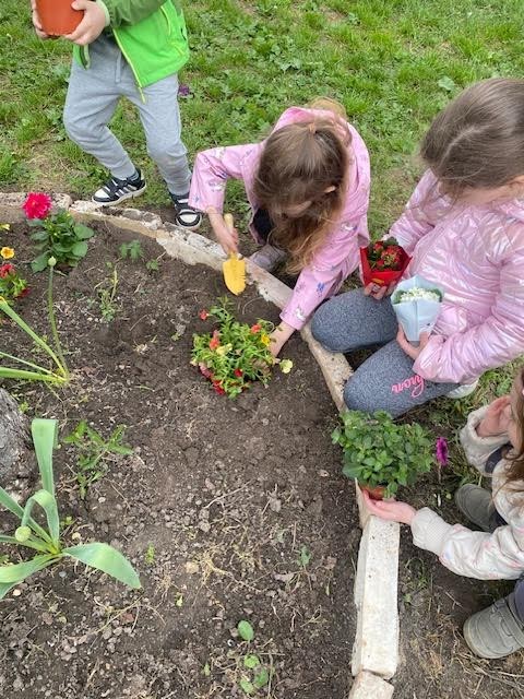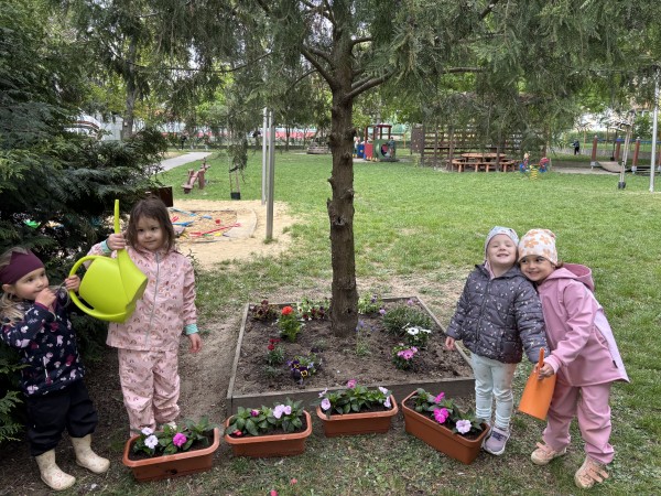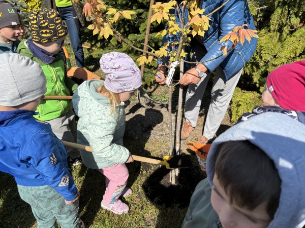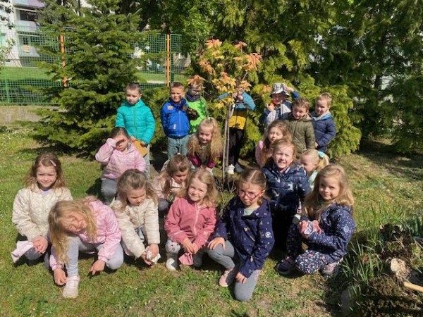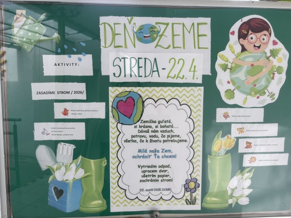 Deň Zeme - 22.apríla 2026, stredu - sme v našej Materskej škole Slniečko oslávili rôznymi pracovnými aktivitami. Deň ZEME, ako tradične sme zahájili spoločnou výsadbou stromčeka - javora na školskom dvore. Veveričky vysadili kvety, poliali a pohrabali zeleninovú záhradku. Zajkovia zrevitalizovali hmyzí domček, pocitový chodník, vyzbierali odpadky, presadili izbové kvietky v triede. Motýliky vysadili kvetinový záhon, vypleli bylinkovú záhradku, vysadili letničky do hrantíkov. Medvedíci sadili rôzne kvietky do svojej kvetinovej záhradky a upravovali okolie záhradky. Lienky sa postarali o kvetinovú výzdobu terasy. Ježkovia doplnili a vyčistili bylinkovú špirálu. Všetky deti sa v triedach rozprávali o svojich ochranárskych skúsenostiach, zážitkoch a starostlivosti o životné prostredie, ktoré vyjadrili vo výtvarných prácach. Každý "dal ruku k dielu", s láskou a rád prispel k dobrej veci - k zveľadeniu našej planéty ZEM.