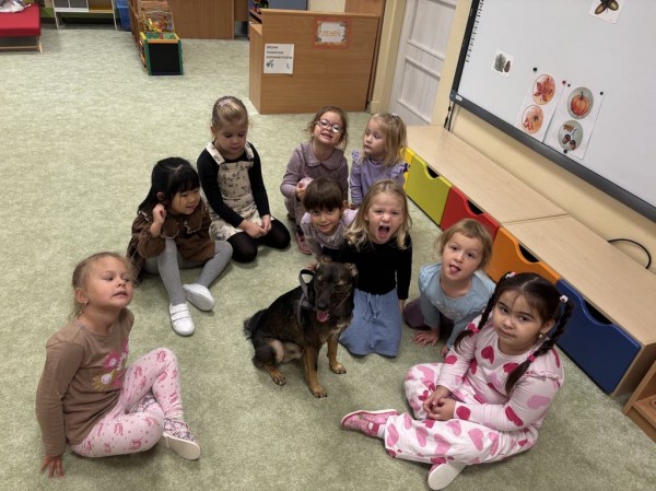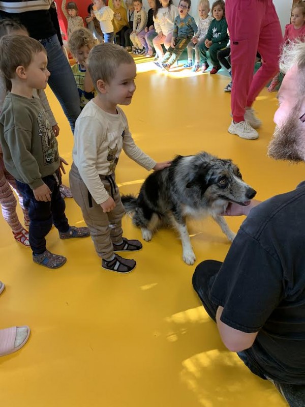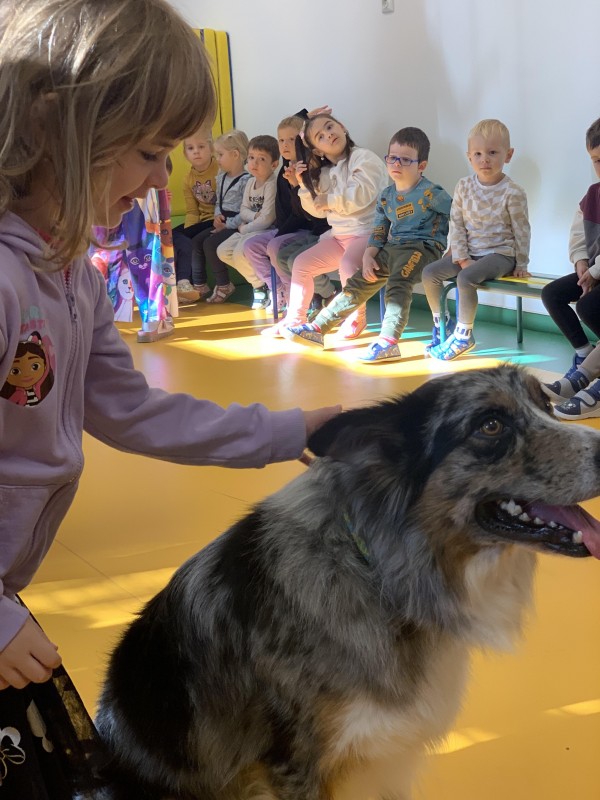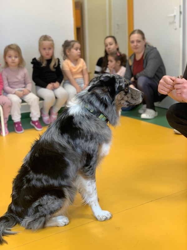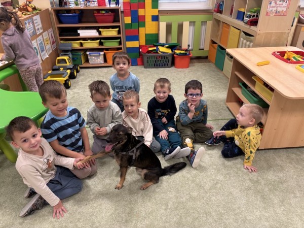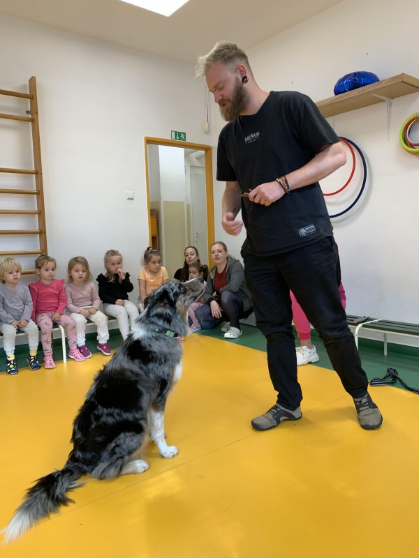 zapojili do vyšetrenia psíka, pani doktorka upozornila deti na bezstresový prístup vyšetrenia zvierat. Asistent Stano a jeho pes Štvrtok predviedli deťom ako reaguje na povely. Štvrtok je veľmi poslušný psík, za plnenie povelov si vyslúžil pochvalu a pohladenie od majiteľa, deti ho ocenili silným potleskom. Ďakujeme za návštevu v našej materskej škole!