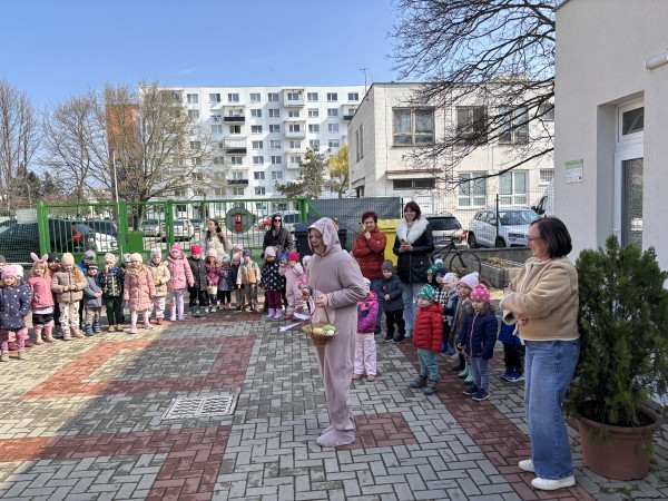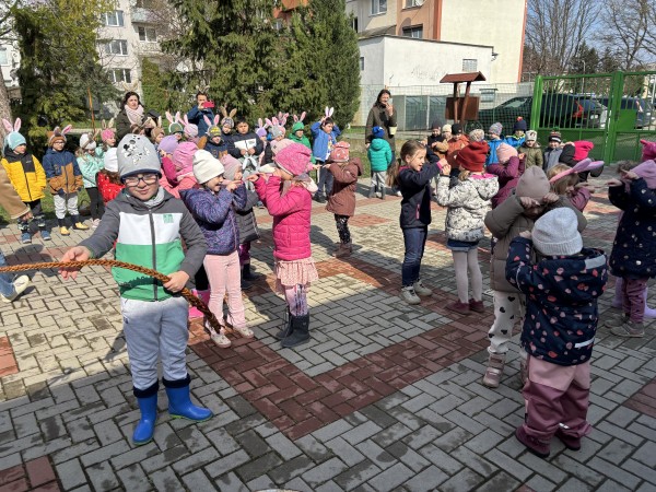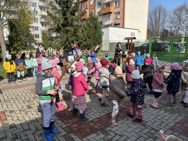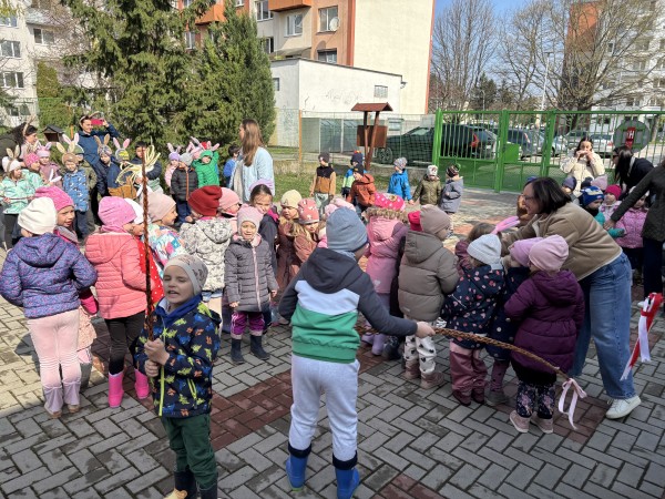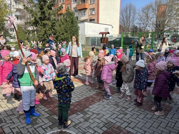 Veľkonočný Zajko Uško k nám doskackal v stredu- 1.apríla 2026, v doobedňajších hodinách. Zajko Uško porozprával deťom veselý "šibačkový" príbeh. Deti si zaspievali so Zajkom Uškom pesničku a povedali si šibačkovú riekanku. Dievčatá a chlapci z našeho tanečného súboru zatancovali šibačkový tanček. Zajko Uško vyobšíval naše dievčatá aj chlapcov. Zajko Uško ukryl každej triede detí veľkonočný poklad plný sladkostí. Naše Slniečka sa pustili do jeho hľadania zdolávaním prekážok a riešením rôznych úloh. Všetci úspešne našli Veľkonočný poklad a sladkou odmenou im boli čokoládové vajíčka, veľkonočné cukríky a iné odmeny. Dovidenia milý Zajko Uško znova o rok!
